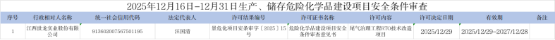 2025年12月16日-12月31日生产、储存危险化学品建设项目安全条件审查办理结果清单