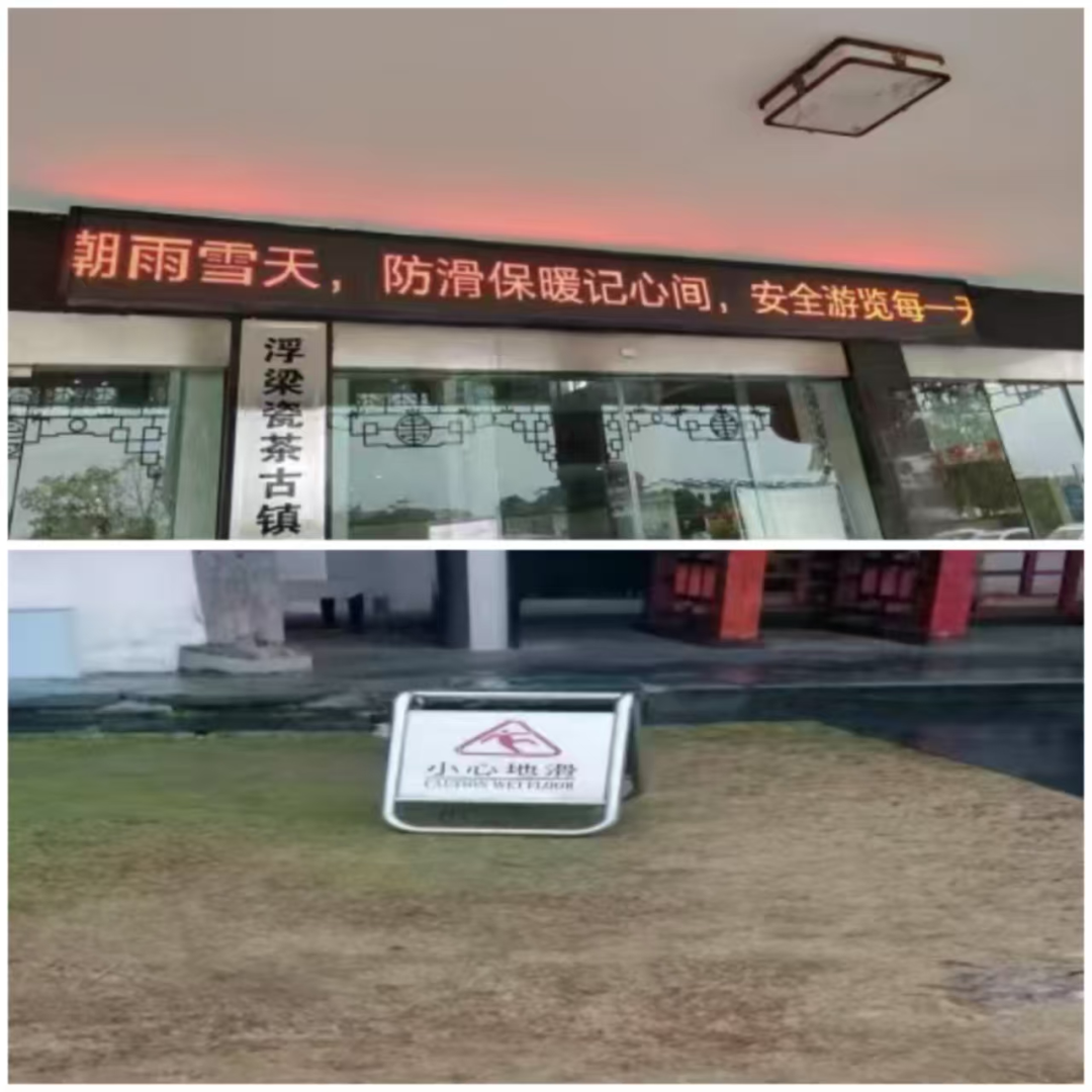 一是通知所有文旅经营单位,做好雨雪冰冻灾害的预防和健在防灾预;二是密切关注天气变化,实时与文旅企业联系,部署防灾减灾预案;三是督促文旅企业做好安全设施的检查和维护工作,确保安全生产工作的落实到位;四是制定了部门应急预案、要求管理人员保持24小时开机待命;五是制定了灾害情况上报机制、让受灾企业在第一时间得到救援,把雨雪冰冻灾害降到最低;六是21日瑶里景区汪胡景点内游步道出现大面积结冰,存在严重安全隐患时。为保障游客安全,汪胡景点临时封闭,22日冰雪解冻后,汪湖景点恢复正常对外开放。